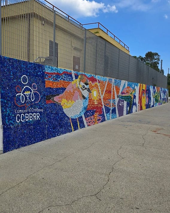 “Este logro fue posible gracias a la participación activa de los ciudadanos de Crotone, con un agradecimiento especial a los niños, quienes diligentemente recolectaron las tapas que forman parte de esta colorida pieza”, afirmó el ilustrador.