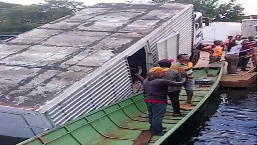 Un camión de carga pesada cayó parcialmente al río Portuguesa, en el estado Guárico, cuando intentaba cruzar en una chalana en el Sector La Negra.