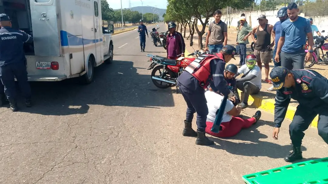 El accidente fue atendido por funcionarios de los bomberos de Miranda, quienes trasladaron a los lesionados al hospital Doctor Alfredo Van Grieken. Quedaron identificados como Josué Chirino de 32 años, conductor de la moto Haojin roja, placa A03T34D. Tuvo traumatismo generalizado y escoriaciones múltiples.