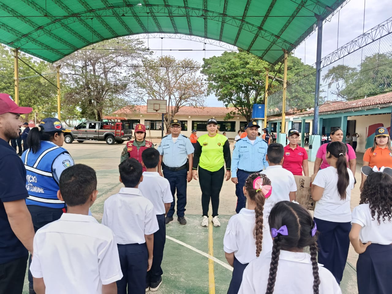Estuvieron presentes: Policía de Falcón, Pnb, Bomberos, Protección Civil, Prevención del Delito entre otros, quienes les dictaron charlas preventivas sobre los valores ciudadanos, la equidad en derechos, oportunidades de prevención en la violencia de género, orden y desplazamiento, simulacro de sismo, entre otros.