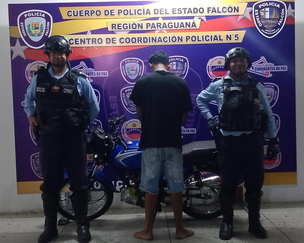 El Comisario Jefe Arizon Sotelo, director del Ccp 05 y jefe de la región Paraguaná, indicó que en labores de patrullaje por la calle principal de la calle Principal del sector Bicentenario en la parroquia Punta Cardón, observaron a un ciudadano en una moto por lo que fue detenido para realizarle una requisa personal, tal como lo contempla la ley.