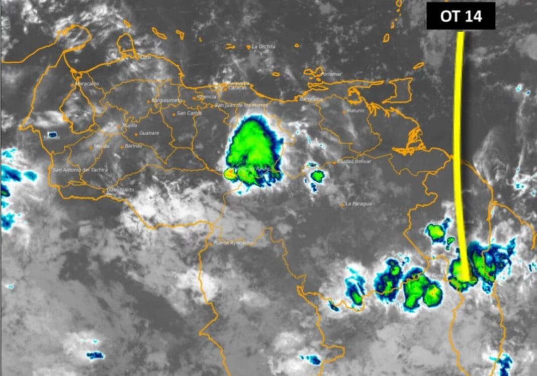El Instituto Nacional de Meteorología e Hidrología (Inameh), informó este lunes que la onda tropical número 14, se ubica en la Guayana Esequiba, interactuando con la Zona de Convergencia Intertropical, condiciones que son reforzadas por divergencia del viento en la altura, originando zonas nubladas con precipitaciones, más intensas y frecuentes en la región sur, nororiente, llanos occidentales/centrales, andes y zulia.